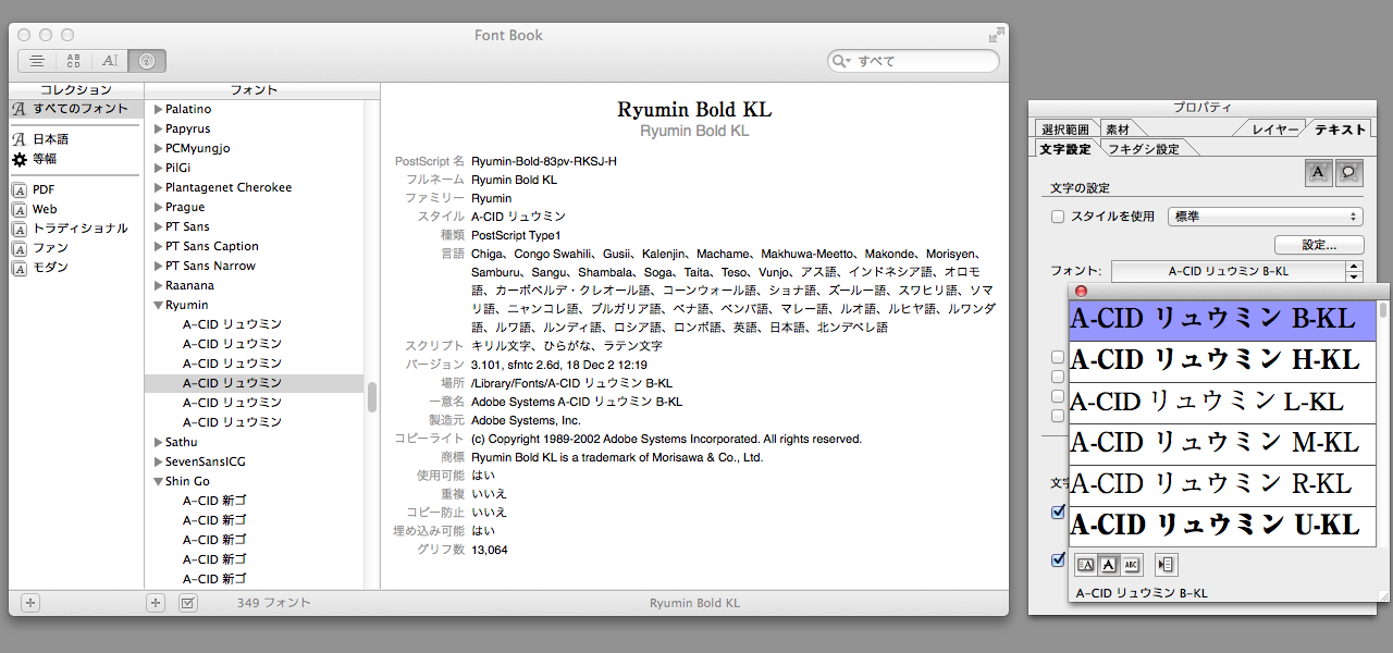 ■[アプリケーション]フォルダ内にある、OSX付属の[Font Book]を起動し、
