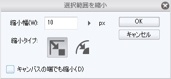 [選択範囲の縮小]につきましては、縮小幅で10ピクセルと指定した場合、