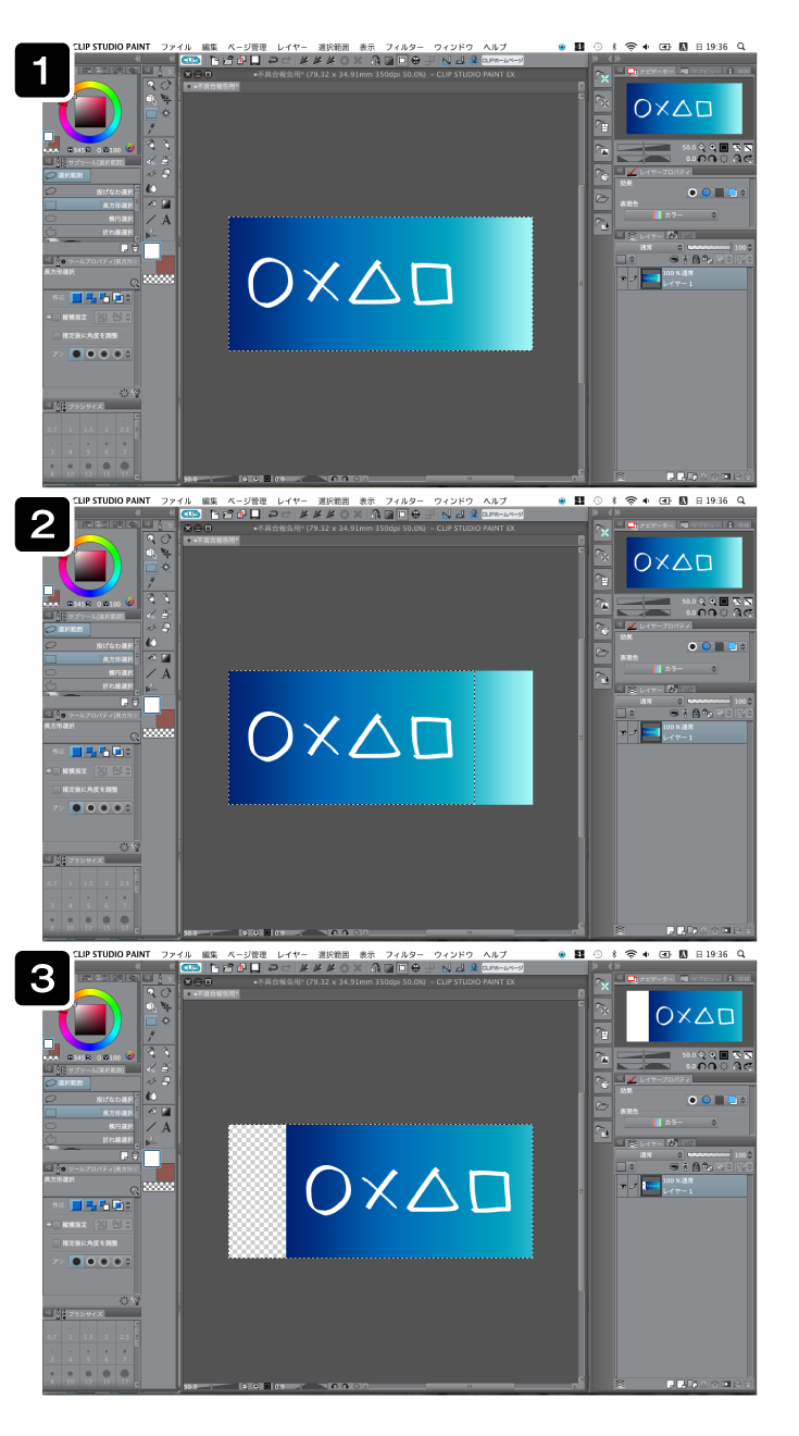 記載いただきました手順にて操作を行いました場合、キャンバス上で選択範囲の
