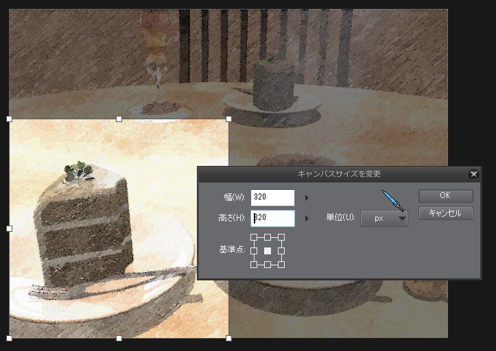 描画領域が残っており、[画像解像度を変更]で誤差が