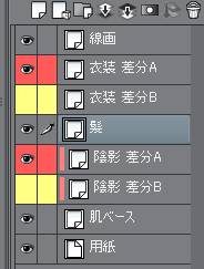 各レイヤーの表示・非表示の状態をまとめて記憶する機能があるとありがたいです。 Photoshopではレイヤーカンプと呼ばれている機能です。 1枚の絵を元にして複数の差分を作成する際に便利かと思います。 具体的にはソーシャルゲームの進化カード差分や、アダルト系イラストの脱衣差分などに有用です。 そういった絵では複数のレイヤーを差分ごとに切り替えながら作業する必要があります。 また差分ごとにフォルダでまとめて整頓することは困難な場合が多いです。 ![]() (簡易的な例。差分Aと差分Bのレイヤーをフォルダにまとめることができない。実際の作業では更に複雑化します) そういった場合に、各レイヤーの表示・非表示の状態を差分ごとにまとめて記憶して、 必要に応じて1クリックで切り替える機能があると大変助かります。 差分作成のみならず、複数のレイヤーによる組み合わせを比較検討したい場合などにも役立つと思います。 以上、ご検討よろしくお願い致します。 ------------------------------------------------------------ ■バージョン: 1.3.2 ■グレード DEBUT( ) PRO( ) EX( ◯ ) ■OS Windows XP( ) Windows Vista( ) Windows 7 ( ◯ ) Windows 8( ) Windows 8.1( ) MacOS X 10.5( ) MacOS X 10.6( ) MacOS X 10.7( ) MacOS X 10.8( ) MacOS X 10.9( ) その他( ) ------------------------------------------------------------ |