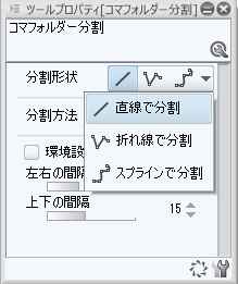 コマ枠分割の方法は、現状では直線や折れ線、スプラインのみになり、