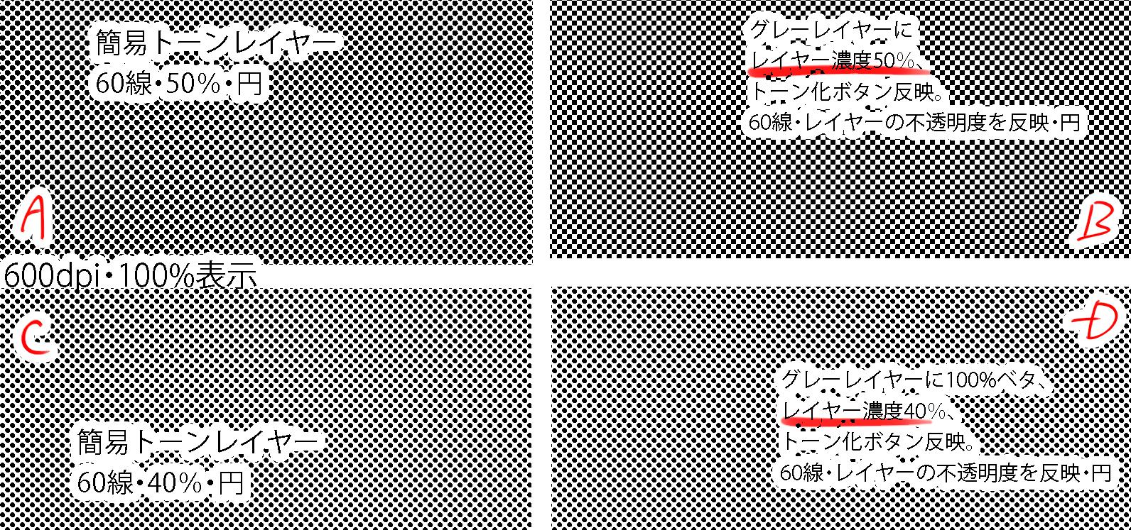 トーン濃度50%付近で円の形を保てず四角になる。 |