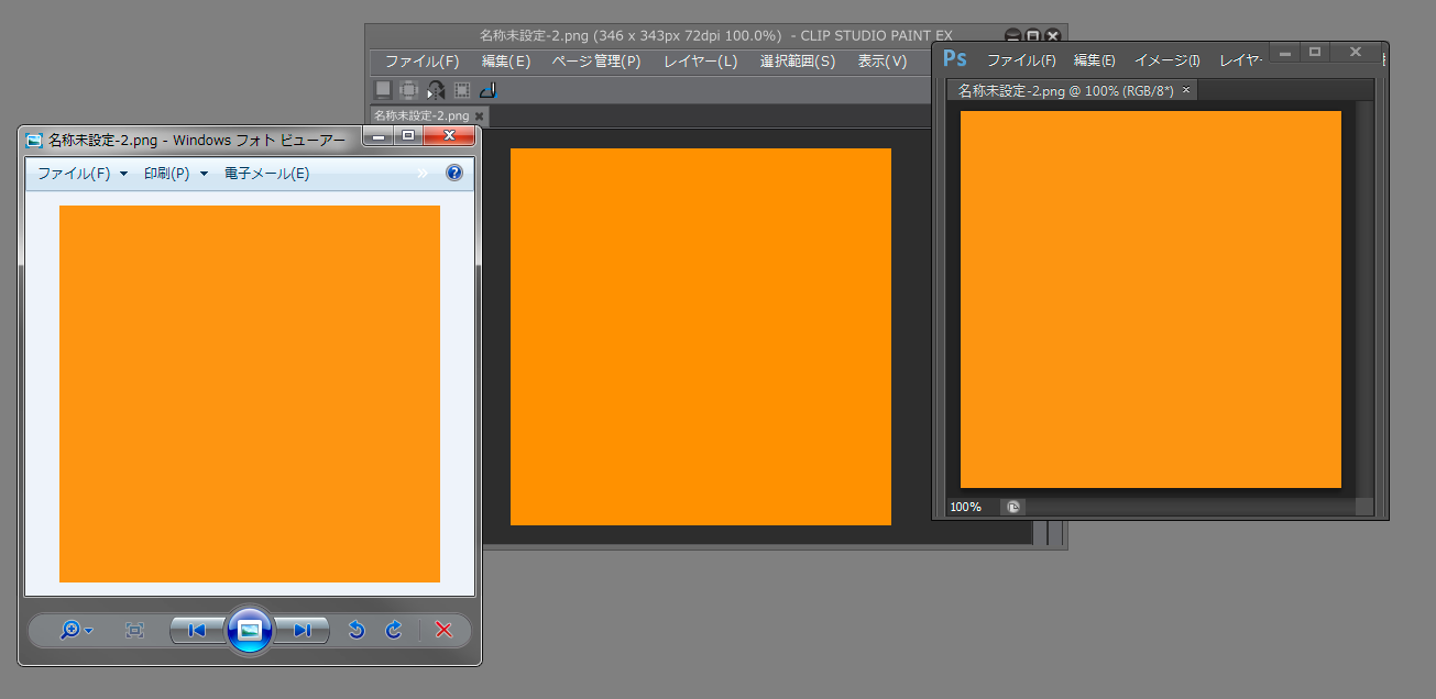 WEB上のpng形式の画像(私が確認できたのがpng形式というだけで他の形式でも起こるかは未検証です)を読み込んだ際、読み込み方法によって色味が変わってしまいます。 画像を添付しておりますのでご確認をお願いします。 (画像は私がイラストレーターの方に依頼し作成して頂いたものなので全体は隠しています。画像の切り抜き等の加工許可は頂いております) ![]() (1)ローカルに保存し、ドラッグ・アンド・ドロップでクリスタで開く (2)ローカルに保存し、ファイル→開く から開く (3)ローカル保存したものをフォトビューアで見た場合(わかるように左上にフォトビューアと出ている状態でスクリーンショットをとりました) (4)WEB上から直接ドラッグ・アンド・ドロップしクリスタで開く(bmp形式と出ます) ※全ての画像はローカル保存→読み込みを試しただけで、上書き保存等は一切しておりません。 上2つは赤く、下2つ(本来の画像)はマゼンタがかっていることがわかると思います。png/bmp形式なのでjpg特有の赤劣化でもないと思います。 個人的には赤いほう(WEB上で見た場合と異なり、赤っぽく調整されている)が好みなので助かるのですが、開き方だけで目に見えるほど差が出るのは不都合かと思いご報告させて頂きます。 もし何かしらの機能が作用しての現象で、バージョンアップ等で修正対応となる場合、その機能のON/OFFができるととても助かります。 重ねてになりますが、補正がかかった物のほうが好みなので。 元からある機能等を何かの拍子にONにしただけでしたら申し訳ありません。 その場合はどの機能かをご教授いただけますと幸いです。 ------------------------------------------------------------ ■バージョン: ※[ヘルプ]メニュー → [バージョン情報]で確認できます。 1.3.3 ■グレード DEBUT( ) PRO( ○ ) EX( ) ■OS Windows XP( ) Windows Vista( ) Windows 7 ( ○ ) Windows 8( ) Windows 8.1( ) MacOS X 10.5( ) MacOS X 10.6( ) MacOS X 10.7( ) MacOS X 10.8( ) MacOS X 10.9( ) その他( ) ------------------------------------------------------------ |