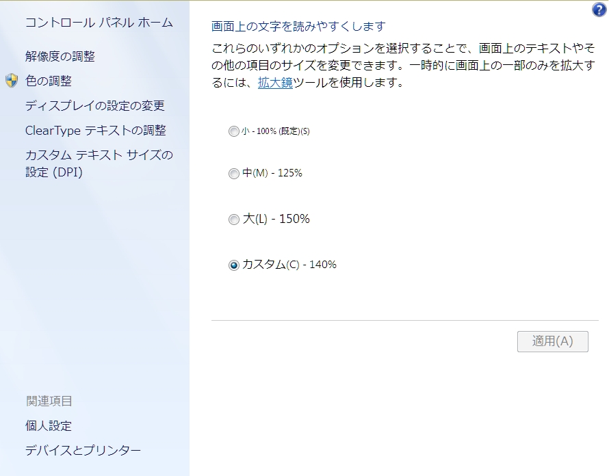 事でしょうか。はい。「標準」「大」は確かに設定が効くのに、「小」だけが設定しても戻されてしまいます。