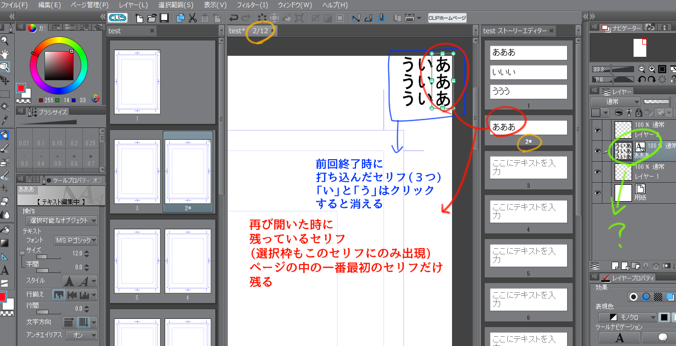 5:ふたたびページ管理からストーリーエディタ、1,2ページを開く。