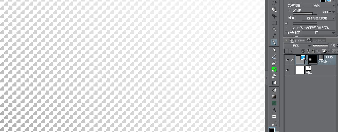 ベタ塗りレイヤーのトーン化において色が薄い状態だと網がグレー化してしまう |