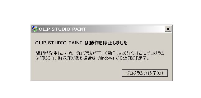 ※[CLIP STUDIO PAINTは動作を停止しました]というメッセージが表示されている状態で