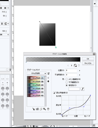 漫画用グラデーションを一旦貼ったあとの混合率曲線のプレビュー