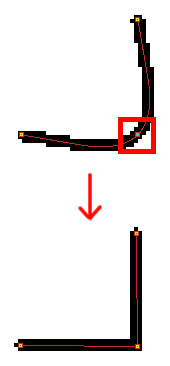 該当の制御点をクリックいただき、角が鋭角になるかお試しください。