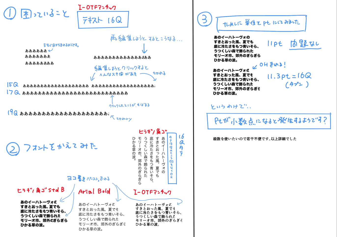 ptが小数点になると、文字がきれたり編集時に表示が変になるようです。
