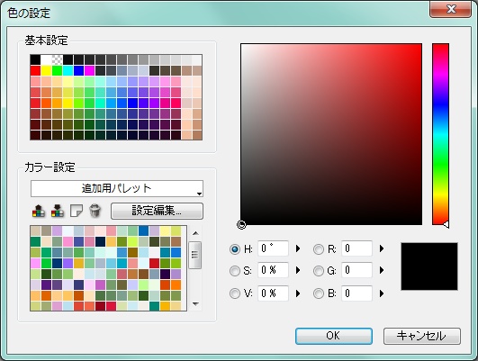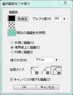 「色指定」をクリックすることでフチ取りに使用する色を変更することが出来ます。