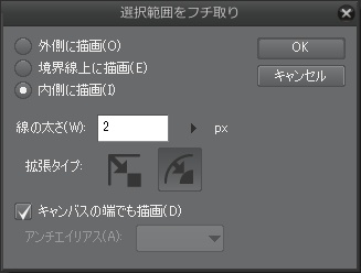 イラスタでは「選択範囲をフチ取り」ダイアログで使う色を選択できたんですよね。