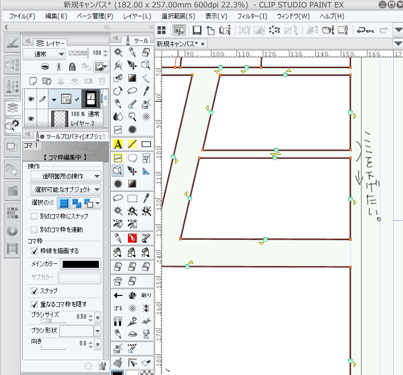 オブジェクトサブツールで移動した際に、片方のコマ枠の制御点のみしか