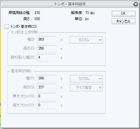 ・該当のファイルを開き、[表示]メニュー→[トンボ・基本枠の設定]にて
