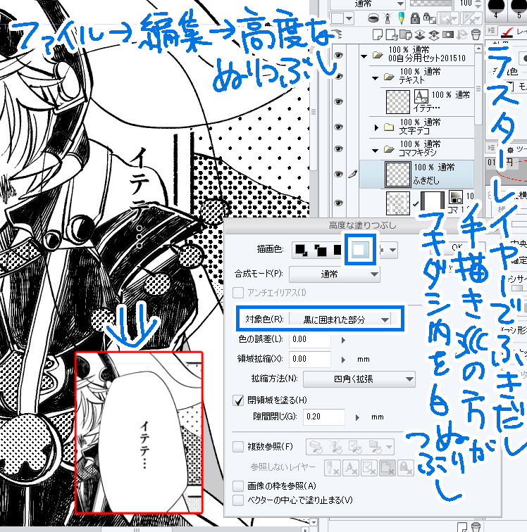 これをすることで手描きをした複数のフキダシ内部を一瞬で自動的に白で塗り潰すことが出来ていたのですが