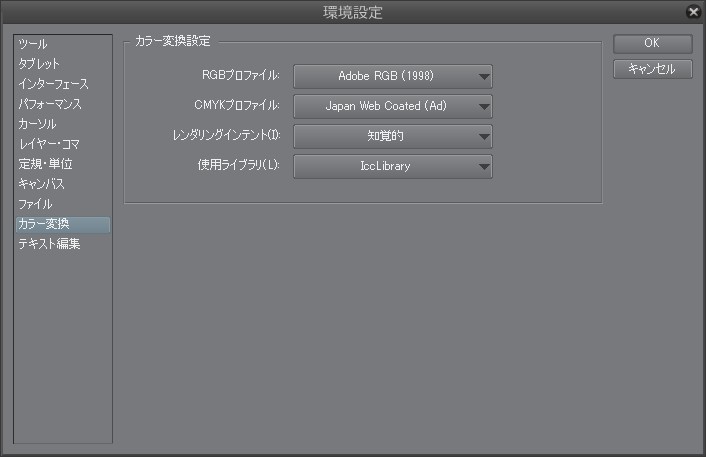 clipにてadobeRGB1998を使用し、PSD書き出し 表現色RGBカラー最適な色深度を自動判別 で保存![]() ![]() PhotoshopCS6にて プロファイル無いので、指定 sRGB IEC61966-2.1を使用して開くと 色が近似する(見た目) 他のプロファイルは失敗する ![]() どこの設定を直せばいいでしょう ------------------------------------------------------------ ■バージョン: ※[ヘルプ]メニュー → [バージョン情報]で確認できます。 ■グレード DEBUT( ) PRO( ) EX(64/142 ) ■OS Windows XP( ) Windows Vista( ) Windows 7 ( ) Windows 8( ) Windows 8.1(64 ) Windows 10( ) MacOS X 10.5( ) MacOS X 10.6( ) MacOS X 10.7( ) MacOS X 10.8( ) MacOS X 10.9( ) MacOS X 10.10( ) その他( ) ------------------------------------------------------------ |