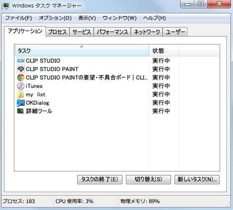 それまでは普通に動作していたのですがjpgで保存しているときにレンダリングしていますとウインドウが出てきたところでフリーズしてしまいました。![]() バーが振り切れても一向に動かないのでキャンセルを押したのですがそこから黙りです。 ウインドウ自体は動かせるのですが縮小や閉じるなどのボタンは押しても反応なしです。 保存しているはずなのにCPUがほとんど動いてないです。 ![]() ![]() 富士通,i7,8GB,2TB,wacom intuos5です。 まだlip保存できていないので消すことができません。 よろしくお願いします。 ------------------------------------------------------------ ■バージョン:動かせないので確認できませんがおそらく最新版です。 ※[ヘルプ]メニュー → [バージョン情報]で確認できます。 ■グレード DEBUT( ) PRO( ○ ) EX( ) ■OS Windows XP( ) Windows Vista( ) Windows 7 ( ○ ) Windows 8( ) Windows 8.1( ) Windows 10( ) MacOS X 10.5( ) MacOS X 10.6( ) MacOS X 10.7( ) MacOS X 10.8( ) MacOS X 10.9( ) MacOS X 10.10( ) その他( ) ------------------------------------------------------------ |
