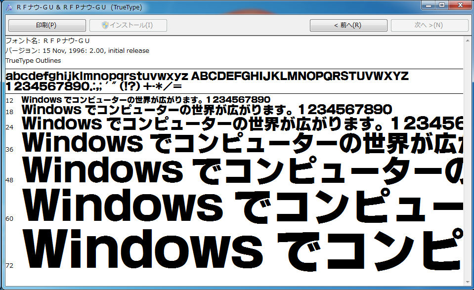 指定されたフォントのスクリーンショットです。