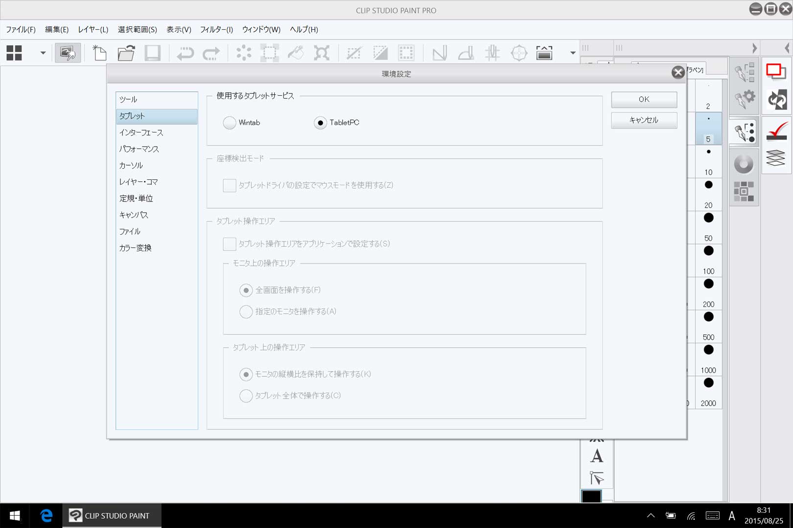 surface3でwin10にバージョンアップ後使用しているとペンは普通に使えますが、タップが常時右クリックになってしまう事がかなりあります。 こうなってしまうとソフトを終了させても再起動するまで同じ症状が継続します。 OSを何度も再インストールしたりもしましたが改善されませんでした。クリスタ未使用時はこの症状が発生しないので、恐らくクリスタ側の不具合かなにかなのかと思います。 ------------------------------------------------------------ ■バージョン: ※[ヘルプ]メニュー→[バージョン情報]で確認できます。 ■グレード DEBUT( ) PRO( ○ ) EX( ) ■OS Windows XP( ) Windows Vista( ) Windows 7 ( ) Windows 8( ) Windows 8.1( ) Windows 10( ○ ) MacOS X 10.5( ) MacOS X 10.6( ) MacOS X 10.7( ) MacOS X 10.8( ) MacOS X 10.9( ) MacOS X 10.10( ) その他( ) ■ペンタブレット Intuos Pro( ) Intuos Comic( ) Intuos( ) Intuos4( ) Intuos5( ) Cintiq( ) Bamboo Fun( ) Bamboo Comic( ) XP-Pen( ) Mousepad Tablet( ) その他( ○ ) ■ペンタブレット モデル名(型番): ドライバのバージョン: ------------------------------------------------------------ |