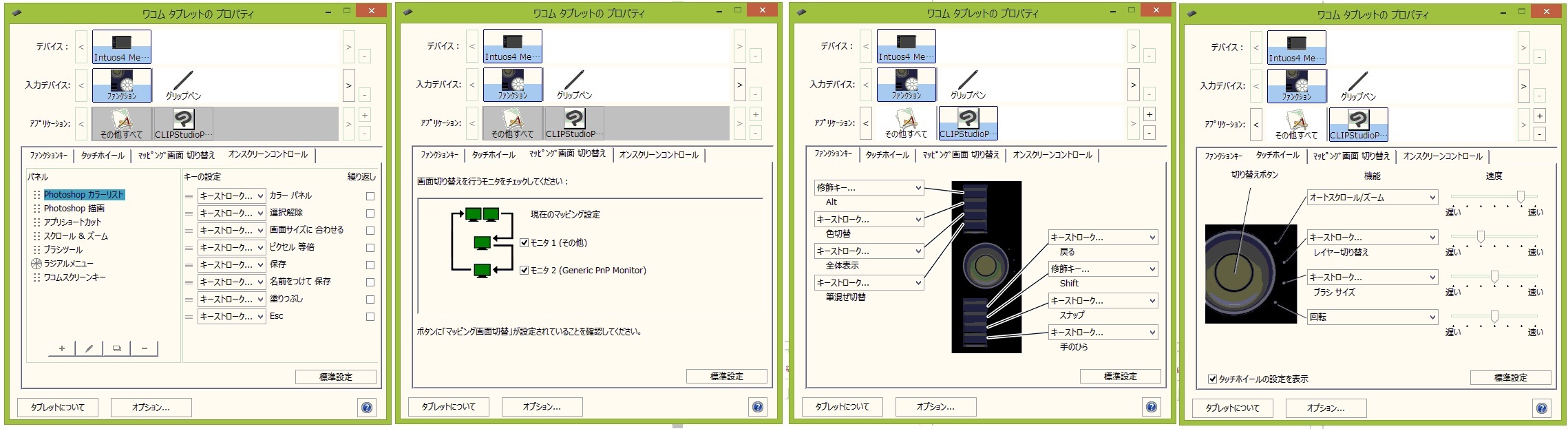 こんにちわ。 私はwacom製ペンタブレットのintuos4とclipstudioのpaintproを使用しているのですが、 このタブレットのファンクションキーを何に設定しても、操作ツールが併用して働いてしまいます。 paintproのほうのショートカット設定では、操作ツールに何のショートカットも設定しておりません。 ------------------------------------------------------------ ■バージョン: ※[ヘルプ]メニュー→[バージョン情報]で確認できます。 ■グレード DEBUT( ) PRO( ○ ) EX( ) ■OS Windows XP( ) Windows Vista( ) Windows 7 ( ) Windows 8( ) Windows 8.1(○ ) Windows 10( ) MacOS X 10.5( ) MacOS X 10.6( ) MacOS X 10.7( ) MacOS X 10.8( ) MacOS X 10.9( ) MacOS X 10.10( ) その他( ) ■ペンタブレット Intuos Pro( ) Intuos Comic( ) Intuos( ) Intuos4( ○ ) Intuos5( ) Cintiq( ) Bamboo Fun( ) Bamboo Comic( ) XP-Pen( ) Mousepad Tablet( ) その他( ) ■ペンタブレット モデル名(型番):PTK-640 ドライバのバージョン:6.3.2w3 ------------------------------------------------------------ |