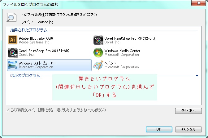 psd、jpgファイルを「プログラムから開く」で選択して開くと