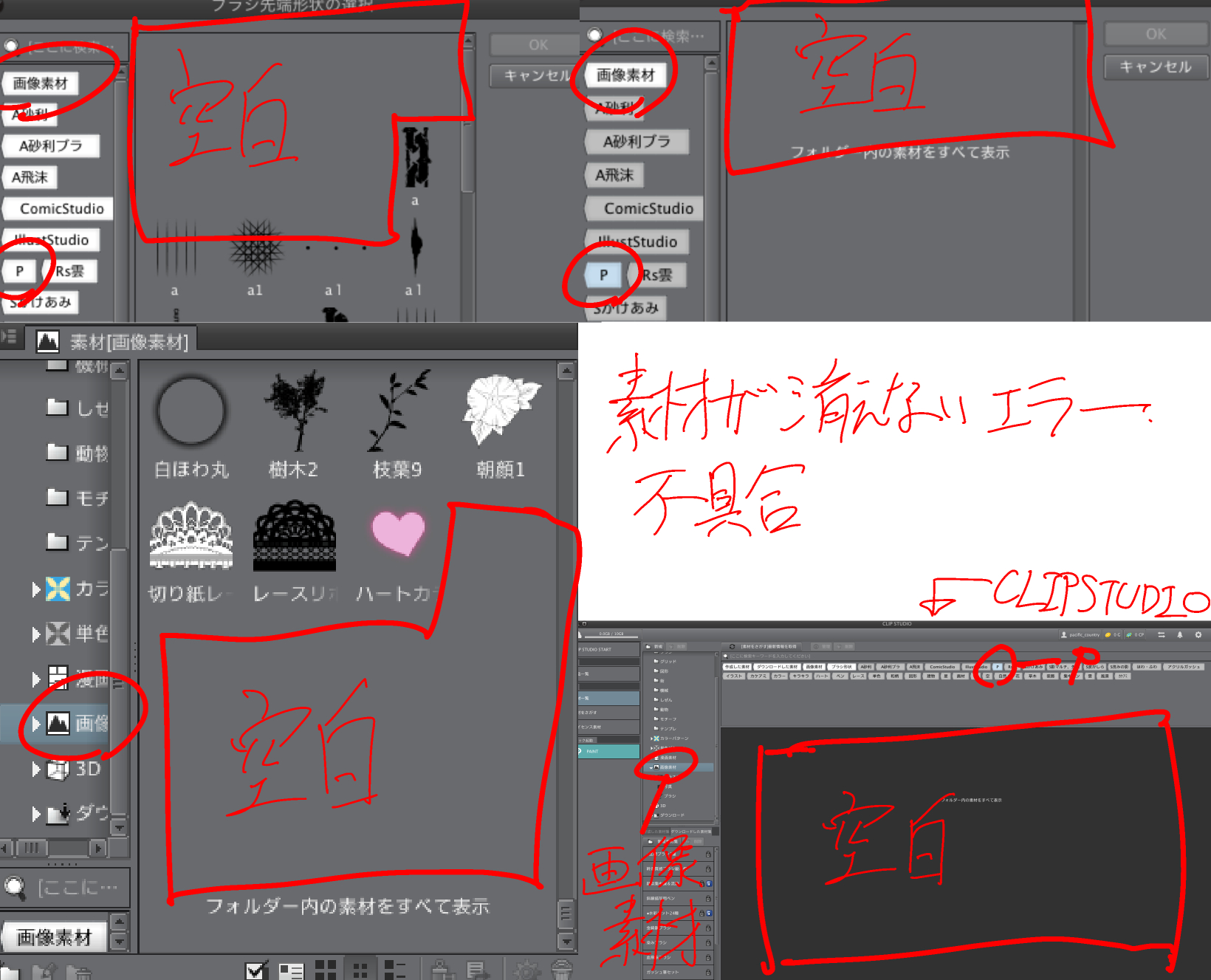 素材データに不整合が生じている可能性があるので、以下の内容を