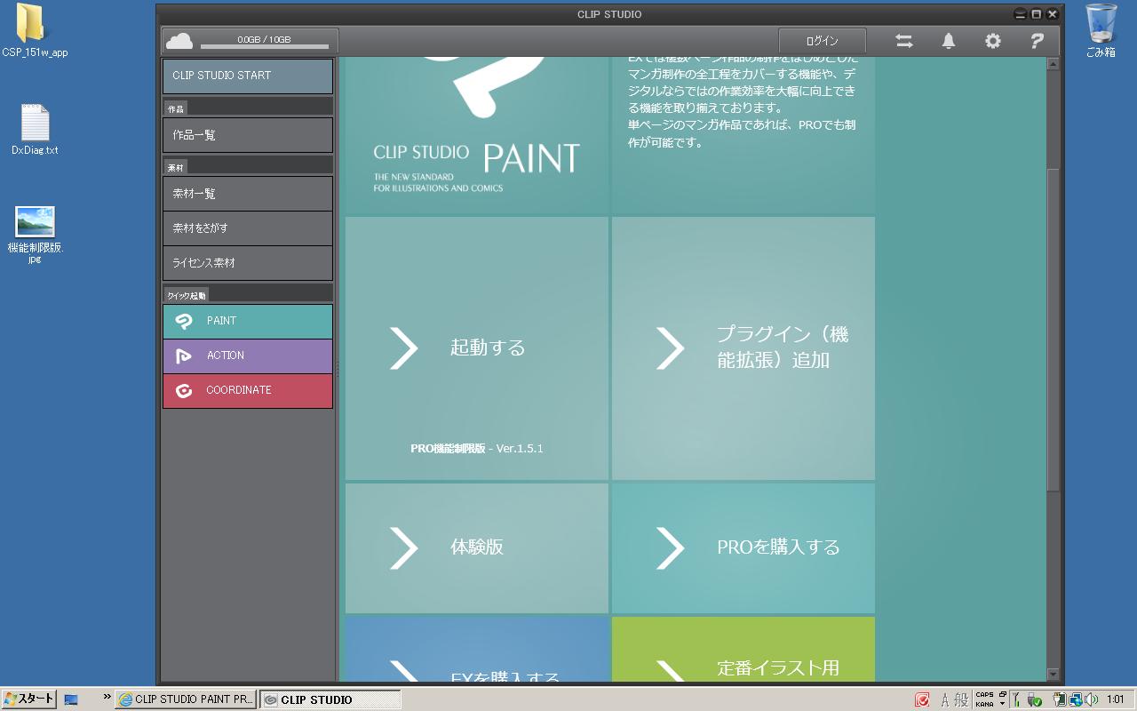 CLIP STUDIOの起動画面内で機能制限版と表示されているので、