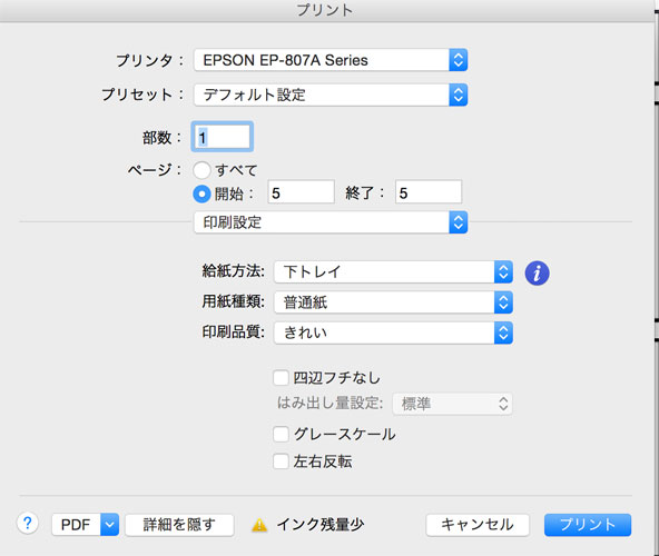 「印刷品質」を「きれい」などに変更していただき、印刷が