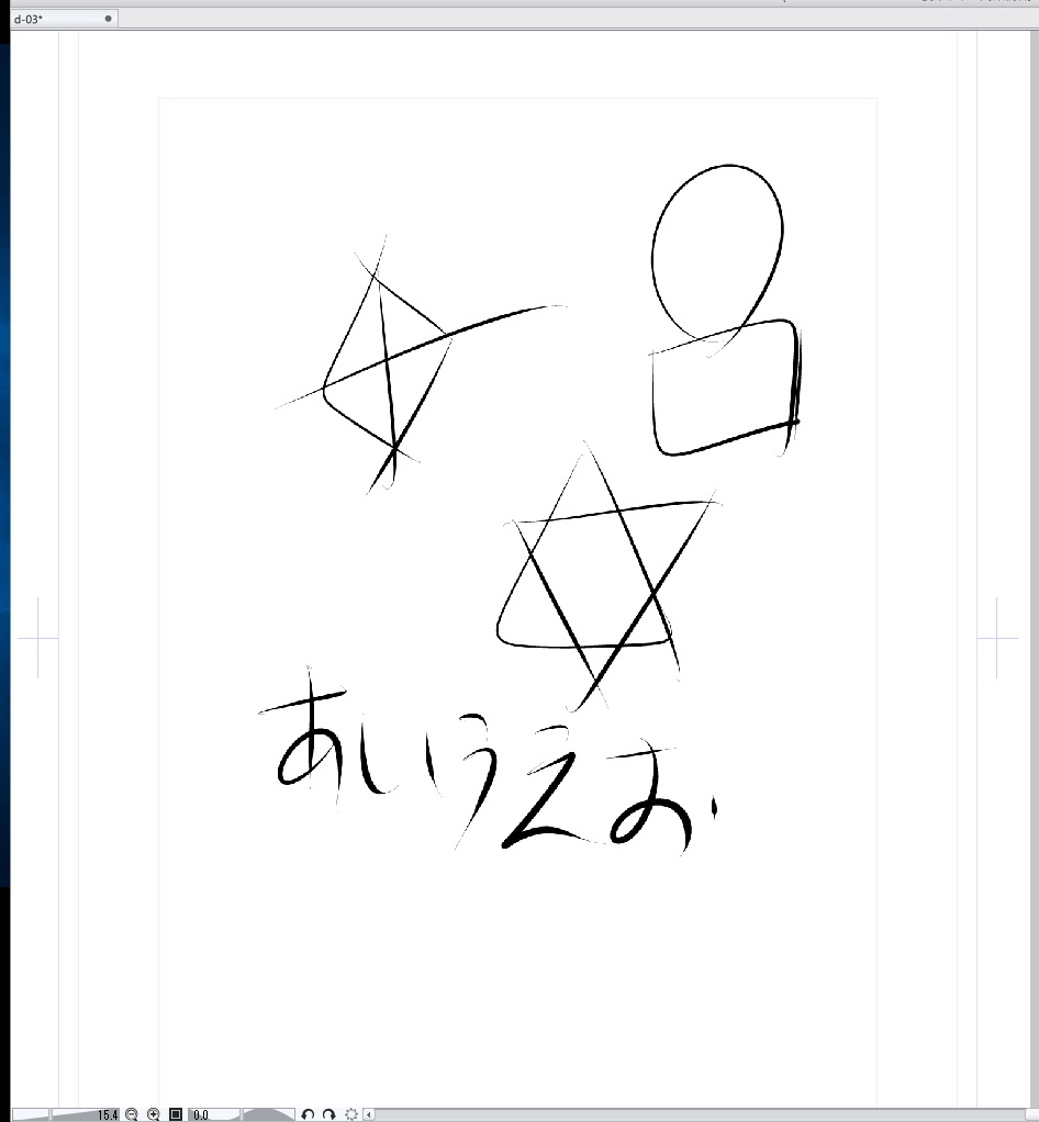 ●同じキャンバスを2つのウィンドウで表示していると、実際に作業している(ペンのカーソルが動いている)片方のみがシャギー化し、もう片方は正常に表示されます。例えば、モニタを2台接続し、モニタ1にペンや消しゴムを使って書いたり消したりするウィンドウ1を表示、モニタ2に全体の確認用にウィンドウ2を表示している場合、ウィンドウ1がシャギー化しても(画像「シャギーあり」参照)ウィンドウ2は正常のまま(画像「シャギーなし」参照)、という具合です。また、モニタ2にウィンドウ1を、モニタ1にウィンドウ2をというようにしても今度はモニタ2でシャギー化が発生するので、モニタに問題があるのではないと思われます。この症状は5台のモニタを使ってすべてで確認されました。症状は、実際にペン入れなどの作業しているウィンドウのみで発生し、確認用ウィンドウが突然シャギー化するという現象は一度も見られていません。