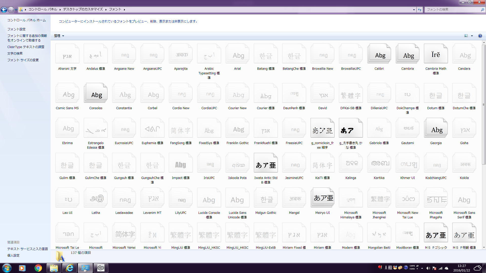 影の薄いフォント(非表示フォント)はシステムで使用されていないフォントです。