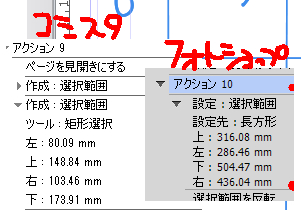 オートアクションの作成時、「選択範囲ツールを選び長方形で選択範囲を取る・・・・」の動作が登録されません。 コミスタやフォトショップは登録されます。 こちらが出来る様になると使い勝手が増すと思われますので どうぞご検討よろしくお願い致します。 (もし現状可能でしたらご教示お願い致します) ![]() ------------------------------------------------------------ ■バージョン:1.5.2 ■グレード DEBUT( ) comico( ) PRO( ) EX( 〇 ) ■OS Windows XP( ) Windows Vista( ) Windows 7 ( 〇 ) Windows 8( ) Windows 8.1( ) Windows 10( ) MacOS X 10.5( ) MacOS X 10.6( ) MacOS X 10.7( ) MacOS X 10.8( ) MacOS X 10.9( ) MacOS X 10.10( ) MacOS X 10.11( ) その他( ) ------------------------------------------------------------ |
