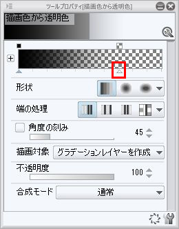 また、[描画色から透明色]だと、完全に透明になるのはグラデーションのストローク