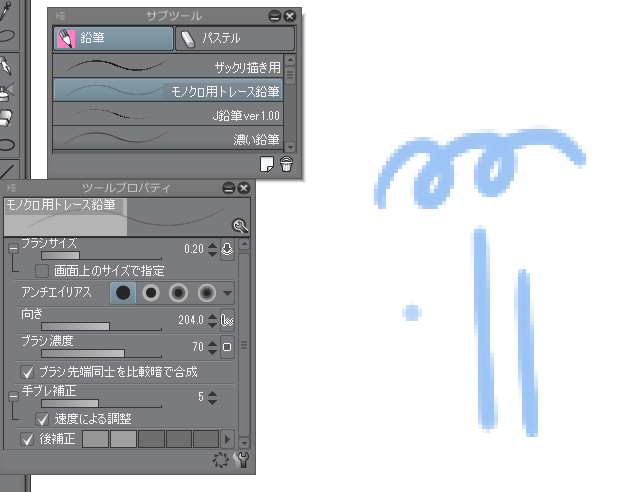 インクの濃度は筆圧で変えたいがアンチエイリアスはかかってほしくない。