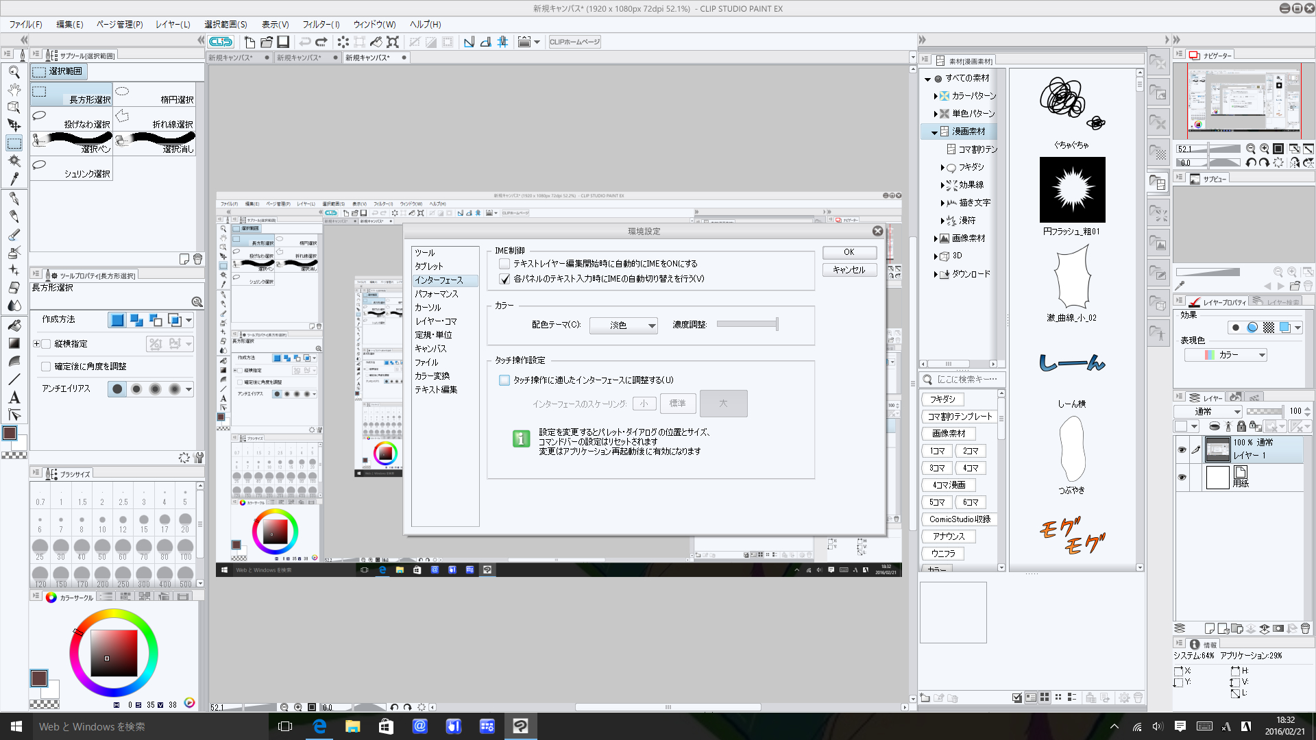 ・現状の発生している状態で、CLIP STUDIO PAINTの画面全体の