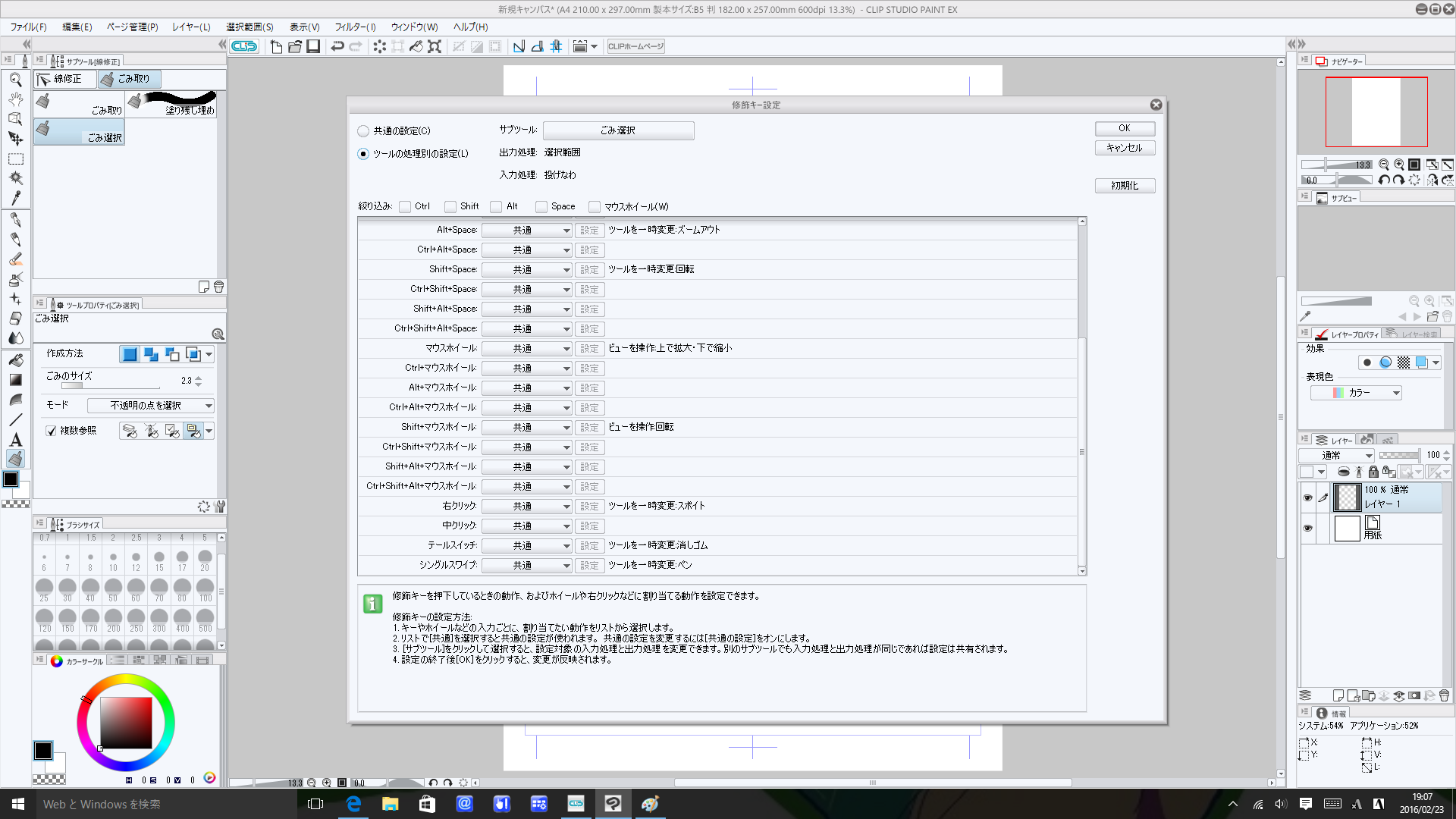 ・[ファイル]メニュー→[環境設定]を開き、[タブレット]を選択後、