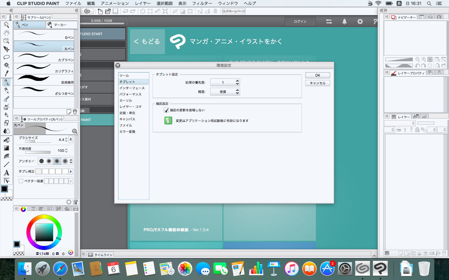 本格的に購入する前に、体験版を試してみようとインストールしましたが、タイトルの通り、ラグなのか何なのか素早く描こうとするとポインタが遅れて、線が出てくるのがとても遅いです。ペンタブの調子が悪いのかな?と思いドライバを入れなおしたり他のUSBポートに挿してみたりしましたが、状況は変わらず……。それともこれは仕様なのでしょうか?非常に描きにくくて困っています……。何か他にするべきことがありましたら教えてくださると幸いです。宜しくお願いします。 ------------------------------------------------------------ ■バージョン:体験版ver.1.5.4 ※Windowsは、[ヘルプ]メニュー → [バージョン情報]で確認できます。 ※MacOSXは、[CLIP STUDIO PAINT]メニュー → [バージョン情報]で確認できます。