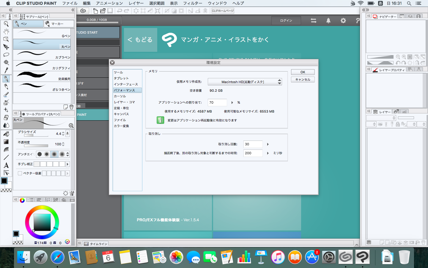 ・[CLIP STUDIO PAINT]メニュー→[環境設定]→[パフォーマンス]の