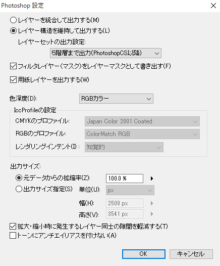 psdファイル、IllustStudioで指定の形式で保存したpsdファイルを