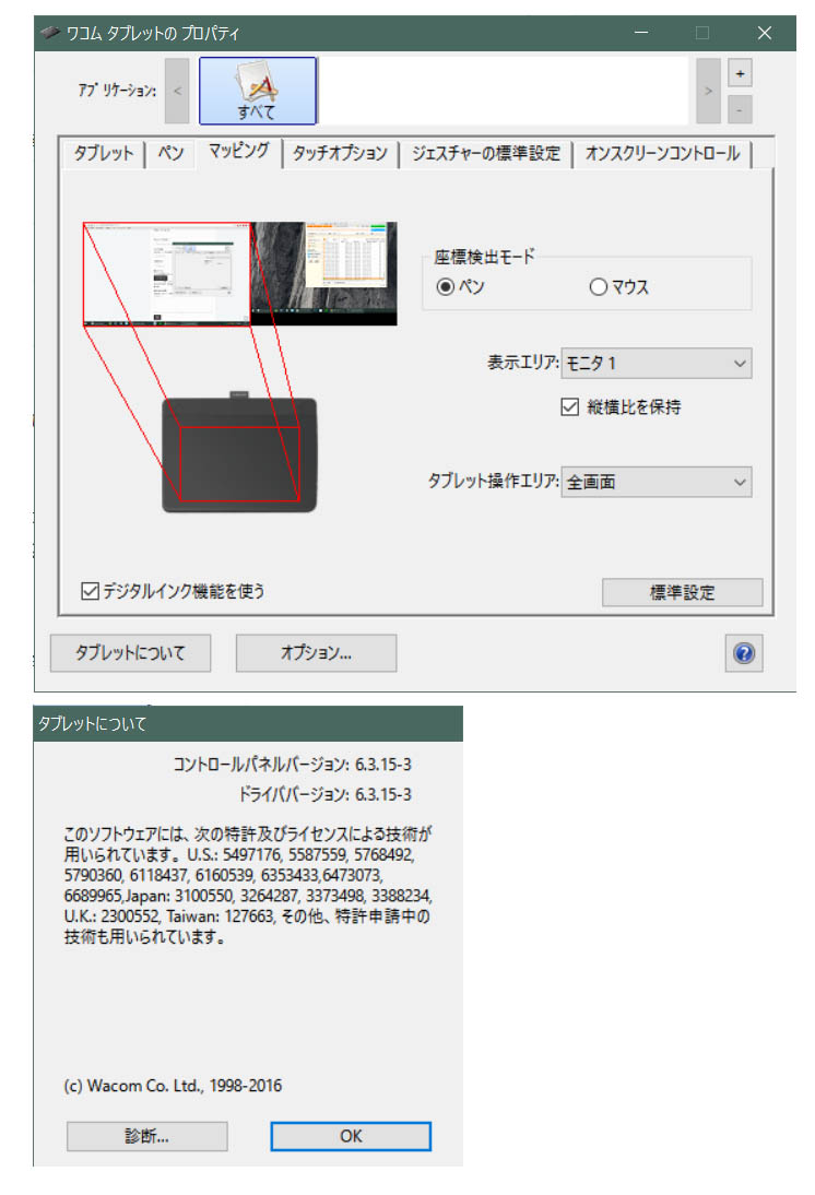 上記の設定であれば、ペンタブレットのプロパティのマッピングが