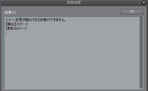 共同作業中に更新や変更の反映をした際に競合が発生した場合に、