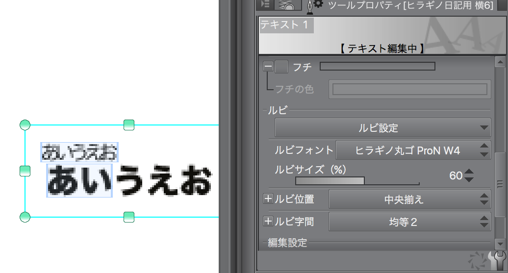 強制終了前と全く同じ条件でスパナマークを使って設定を保存してルビを振ってみたので、