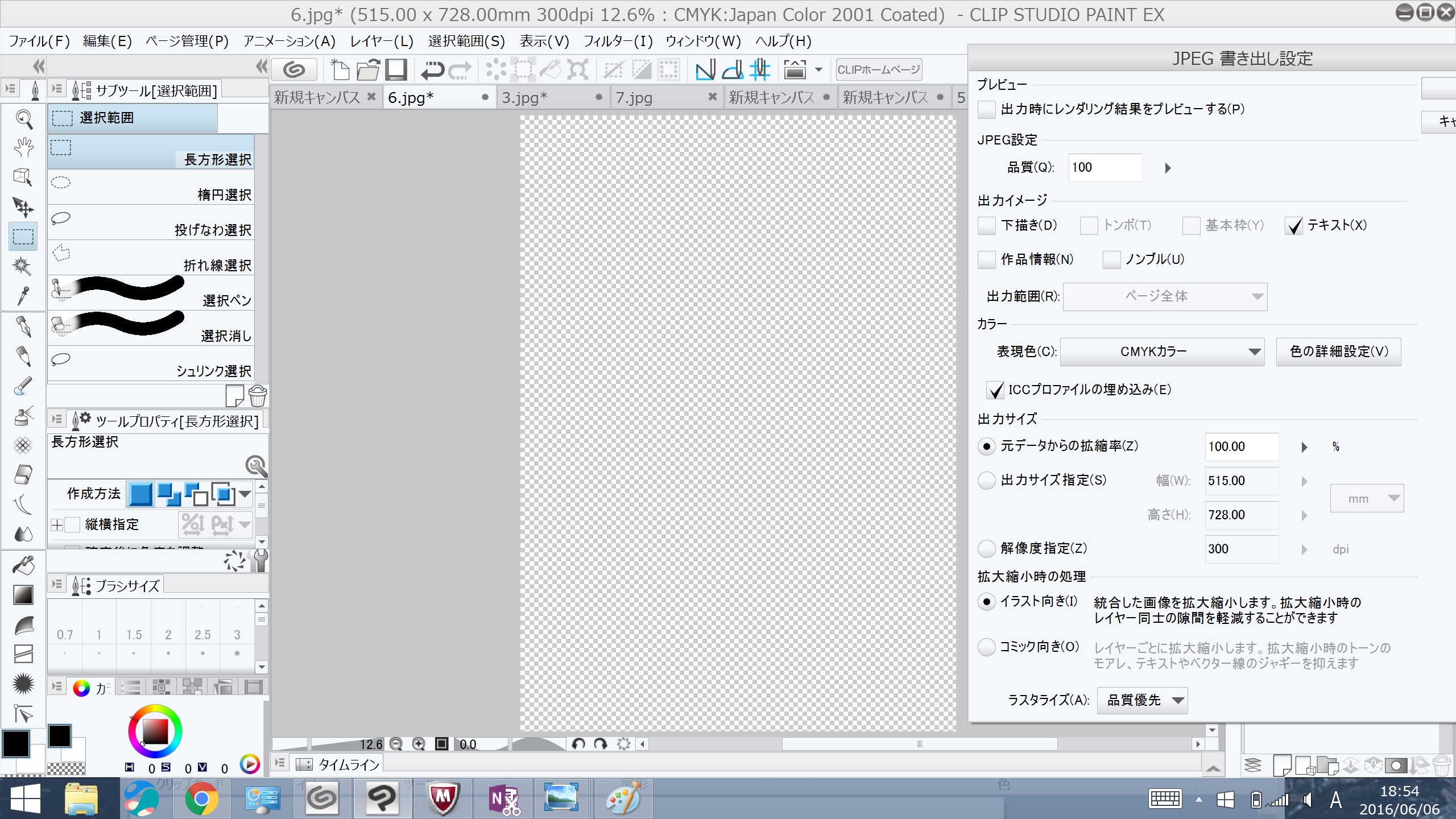 B2サイズ(515、728)で作成したイラストを「画像を統合して書き出し」をしてその書き出しした画像を開くと上の表記に 6083×8598px 72dpiとなっています。 300dpiのつもりで保存したはずなのですが…。 この6083×8598pxという数値もよくわかりません。 「別名で保存」で保存したやつを開いたらちゃんとB2サイズ表記と300dpiとかかれていますのに書き出しだとこうなります…。別名で保存の場合ですとCMYKで保存できないと思うので困っています。 下の画像は書き出しするときの設定です。(仕事がらイラストを表示させてない状態です) 業者様のほうへ提出したのでうまく印刷されるか心配です。(特に72dpi?) 返信お願いいたします ![]() ------------------------------------------------------------ ■バージョン: ※Windowsは、[ヘルプ]メニュー → [バージョン情報]で確認できます。 ※MacOSXは、[CLIP STUDIO PAINT]メニュー → [バージョン情報]で確認できます。 ■グレード DEBUT( ) comico( ) PRO( ) EX( 〇 ) ■OS Windows XP( ) Windows Vista( ) Windows 7 ( 〇 ) Windows 8( ) Windows 8.1( ) Windows 10( ) MacOS X 10.5( ) MacOS X 10.6( ) MacOS X 10.7( ) MacOS X 10.8( ) MacOS X 10.9( ) MacOS X 10.10( ) MacOS X 10.11( ) その他( ) ------------------------------------------------------------ |