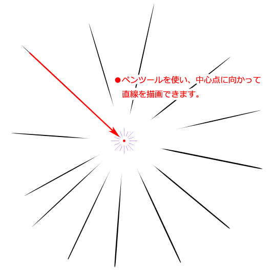 [定規作成]ツールの[特殊定規]ツール[放射線]にしてお使いいただく事でも