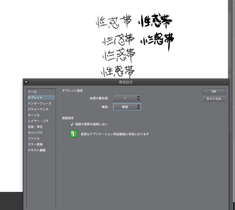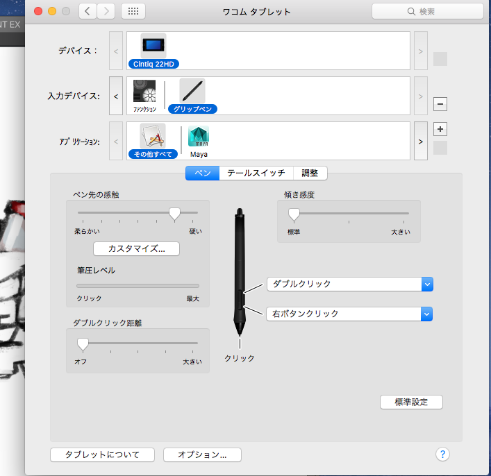 環境設定]→[ワコムタブレット]を選択し、表示される画面の