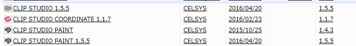 ・CLIP STUDIOと付いているもののそれぞれの名称とバージョン