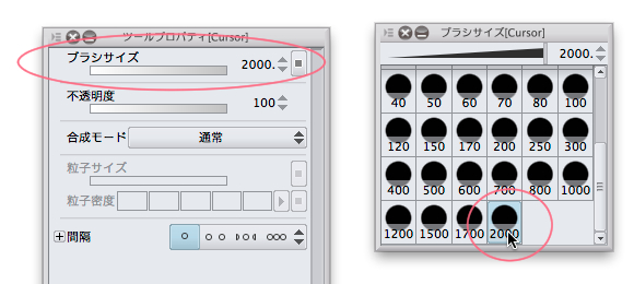 でも問題は例えばブラシ先端画像自体の横の長さが2000pxだったとしますと、