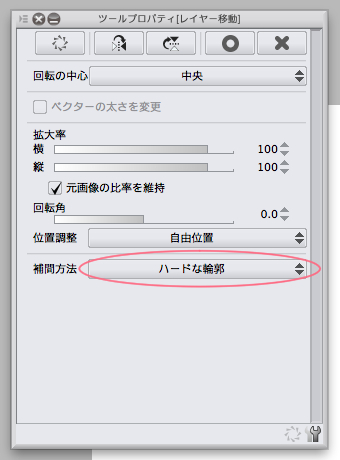 補間方法を「ハードな輪郭」にしてみてください