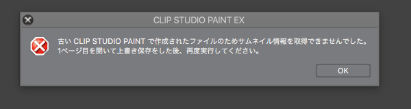 1.6にバージョンをあげています。 3D製本プレビューをクリックするとエラーが出てきます ![]() 上書き保存をしましたがエラーは出続け 別名で保存したものでもエラーが出てきます。 バージョンを上げた後は、クリスタEXを落とし PC自体も再起動しています。 プレビューが使えず困っています… ------------------------------------------------------------ ■バージョン: ※Windowsは、[ヘルプ]メニュー → [バージョン情報]で確認できます。 ※MacOSXは、[CLIP STUDIO PAINT]メニュー → [バージョン情報]で確認できます。 ■グレード DEBUT( ) comico( ) PRO( ) EX( ○ ) ■OS Windows XP( ) Windows Vista( ) Windows 7 ( ) Windows 8( ) Windows 8.1( ) Windows 10( ) MacOS X 10.5( ) MacOS X 10.6( ) MacOS X 10.7( ) MacOS X 10.8( ) MacOS X 10.9( ) MacOS X 10.10( ) MacOS X 10.11( ○ ) その他( ) ------------------------------------------------------------ |