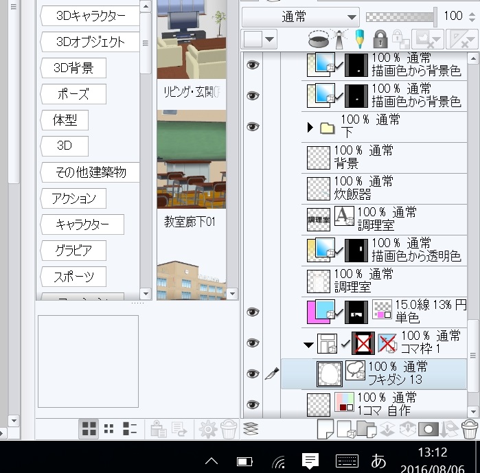 新規作成した、フキダシはレイヤーフォルダの上層に描けました。